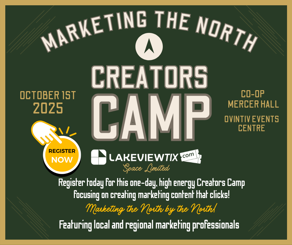 Get ready to roll up your sleeves, get creative, and walk away with real, actionable marketing strategies! The first annual Marketing the North Creators Camp is set for Wednesday, October 1, 2025 in the Co-op Mercer Hall at the Ovintiv Events Centre in Dawson Creek — and you won’t want to miss it.