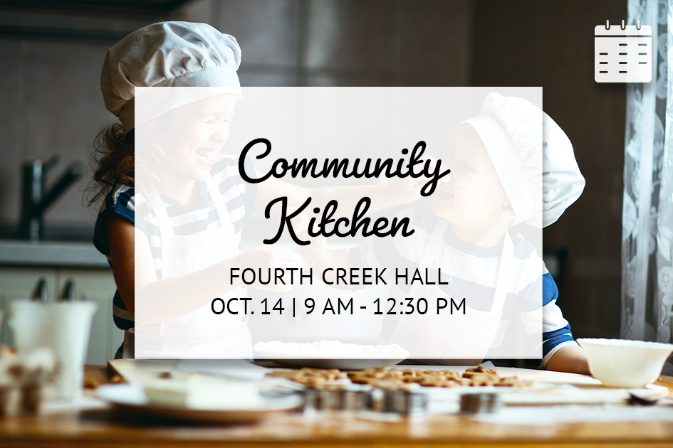 The Fourth Creek Community Association invites you to participate in their Community Kitchen, held Tuesday, October 14, 2025 from 9 a.m., to 12:30 p.m., at the Fourth Creek Hall.