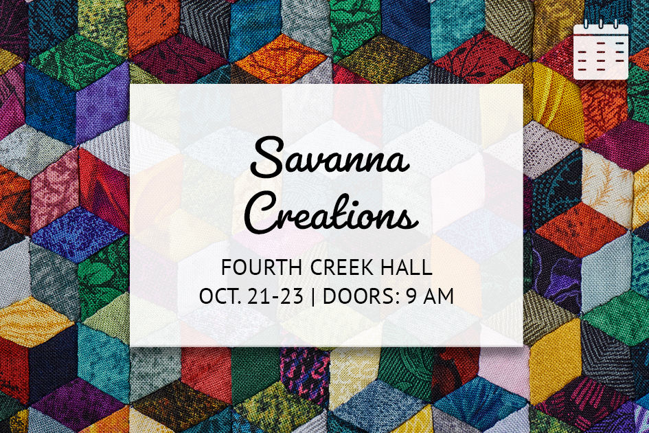 Join Savanna Creations, from October 21-23, 2025, at the Fourth Creek Hall to craft, shop, or visit.