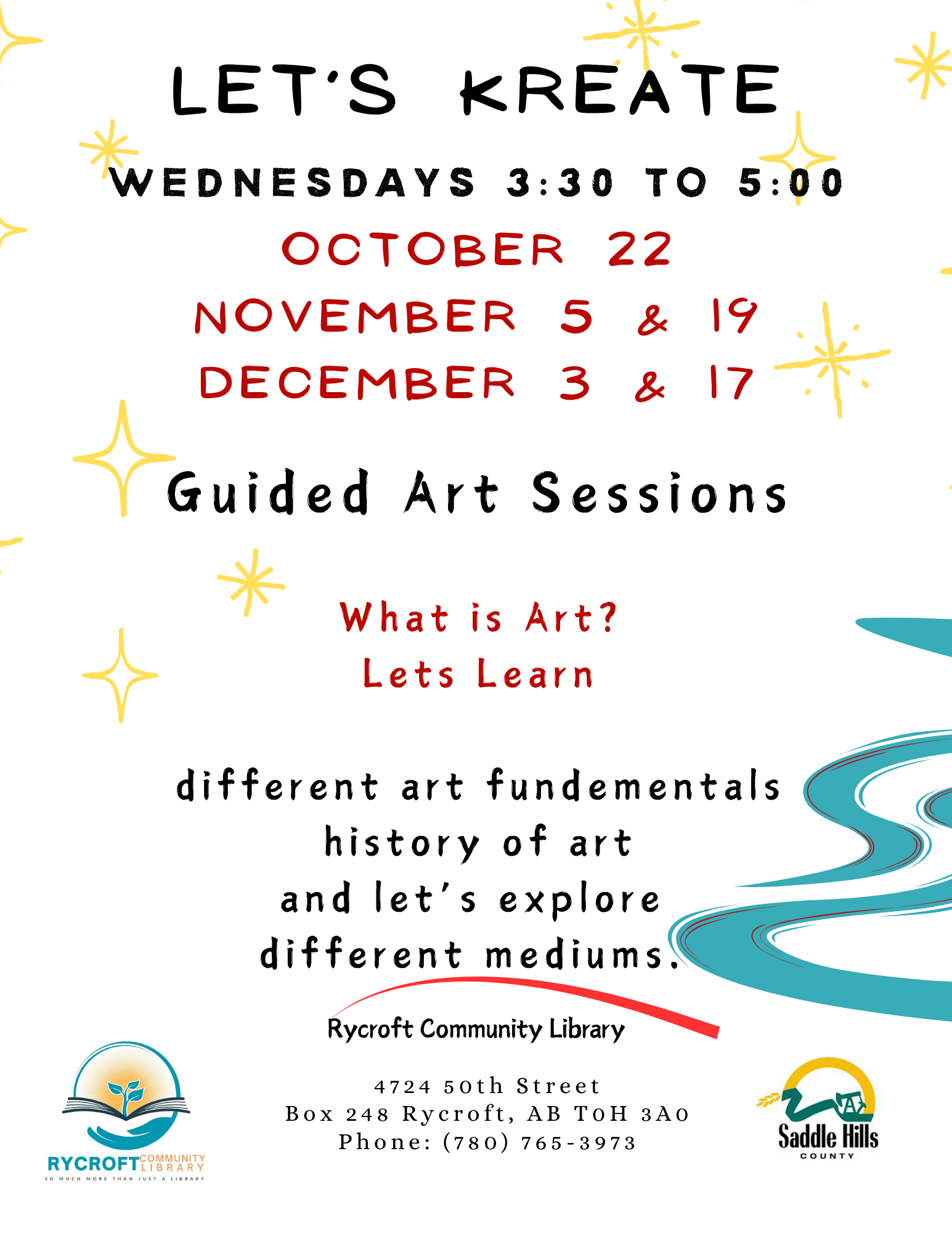 Get creative this fall at the Rycroft Community Library’s Let’s Kreate guided art sessions, held on Wednesdays from 3:30 to 5:00 p.m.